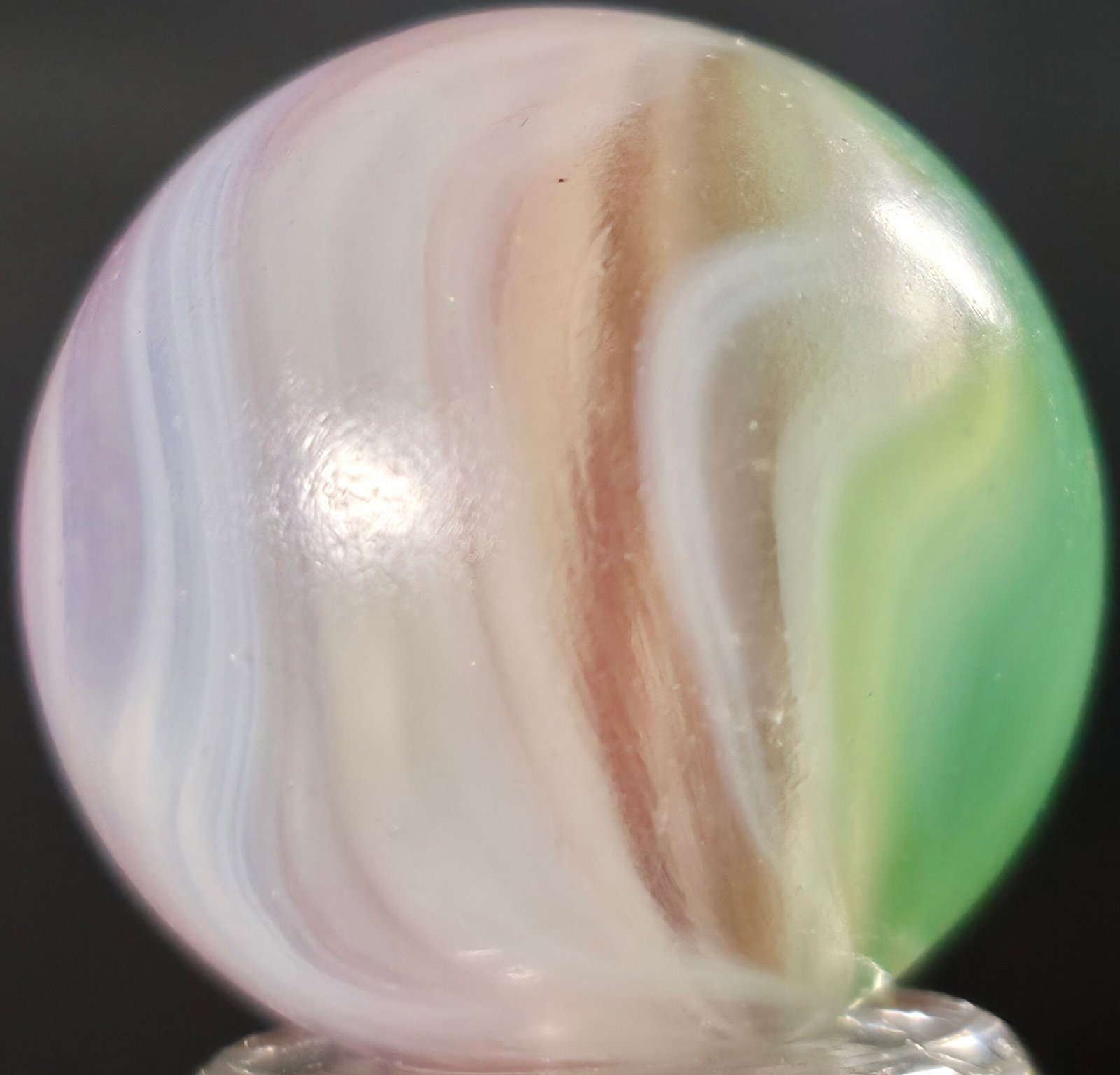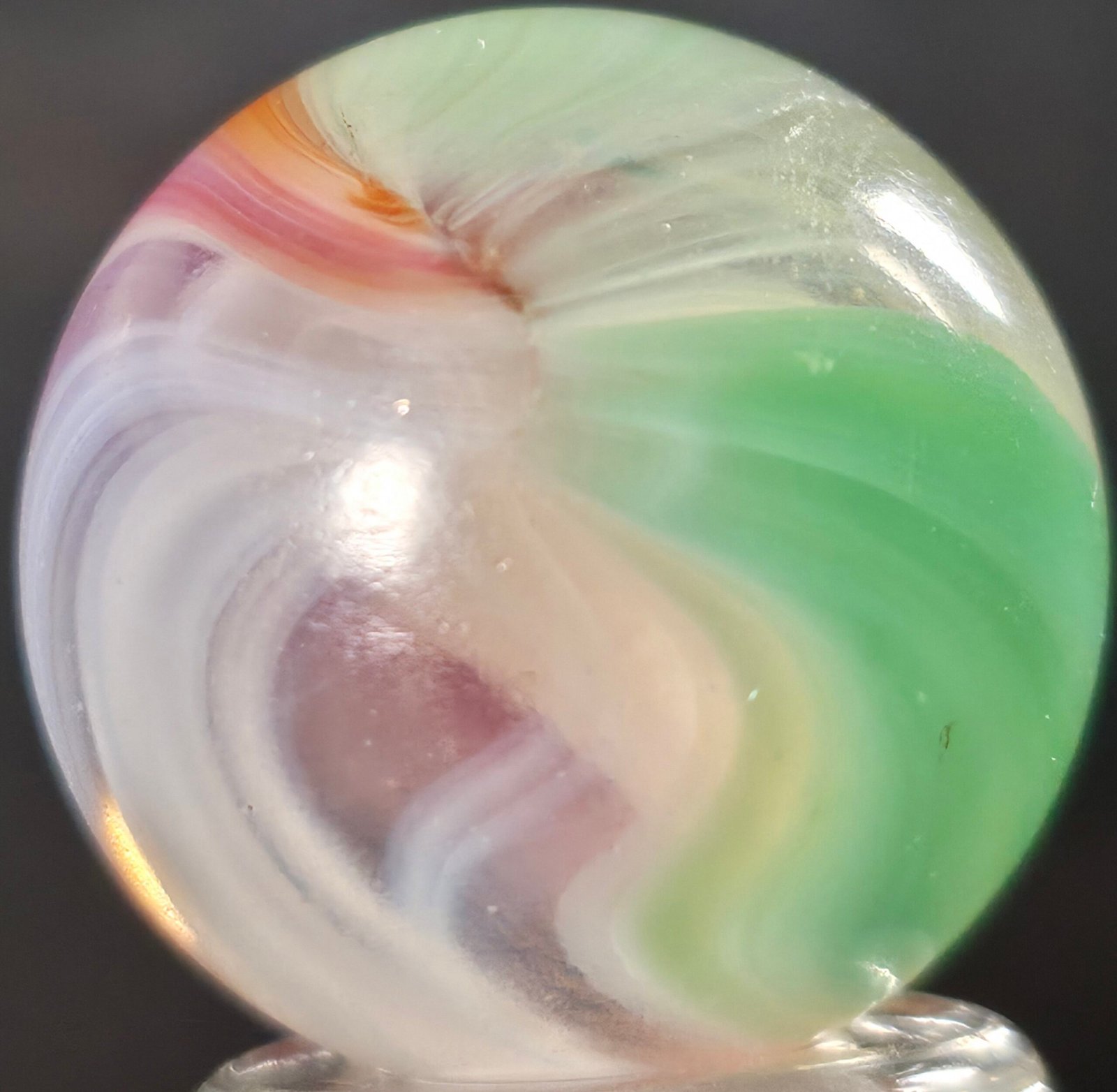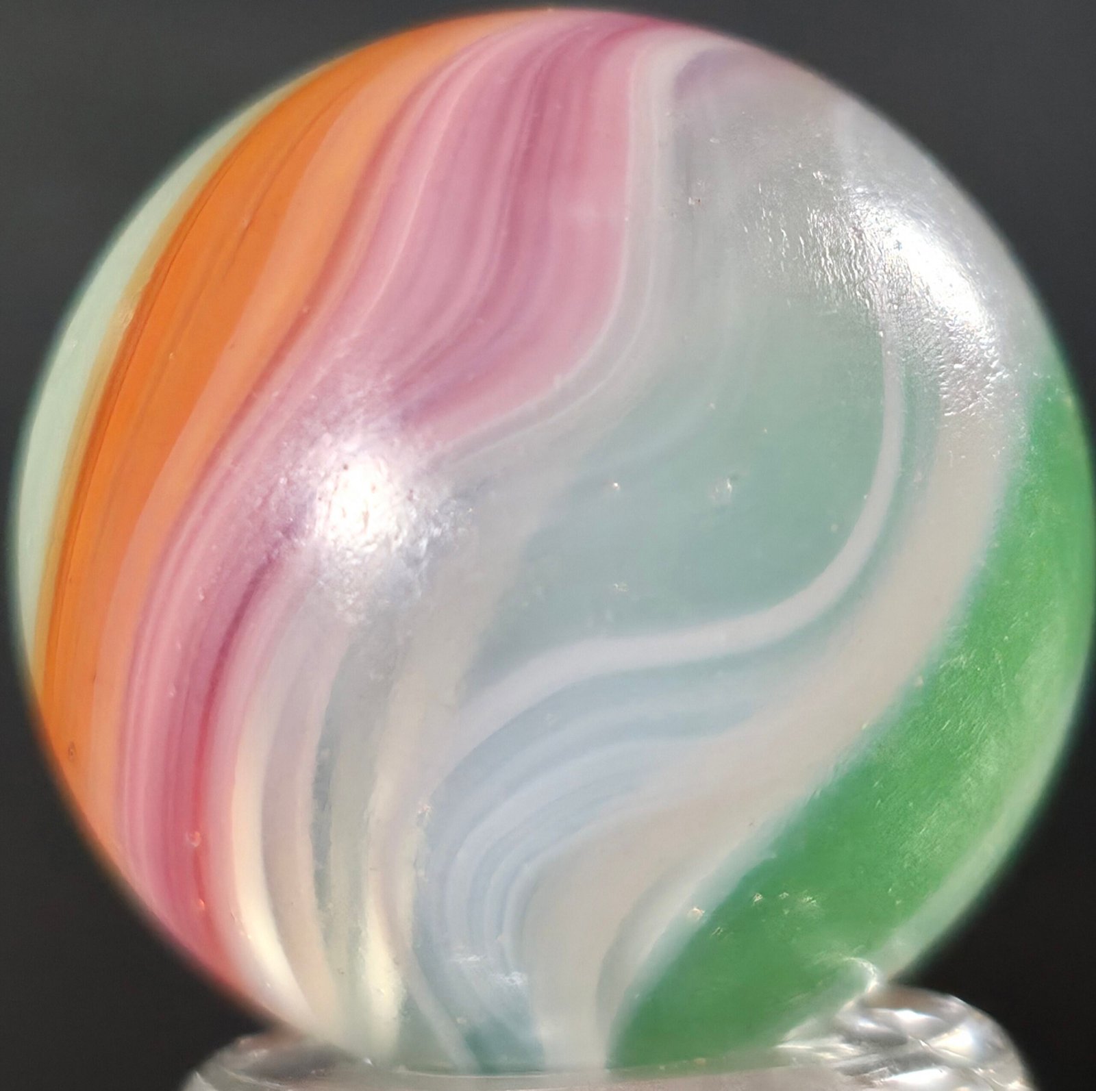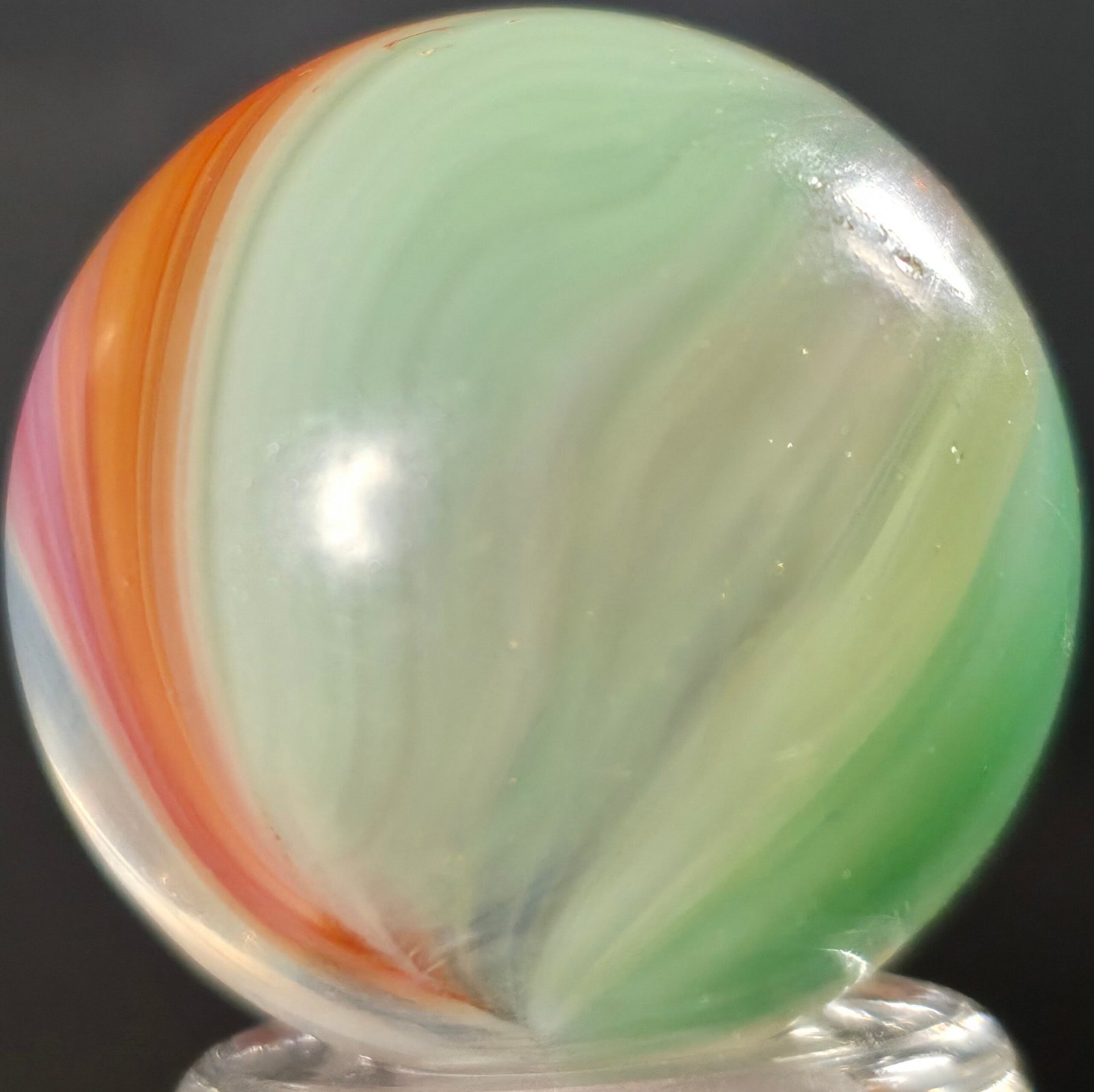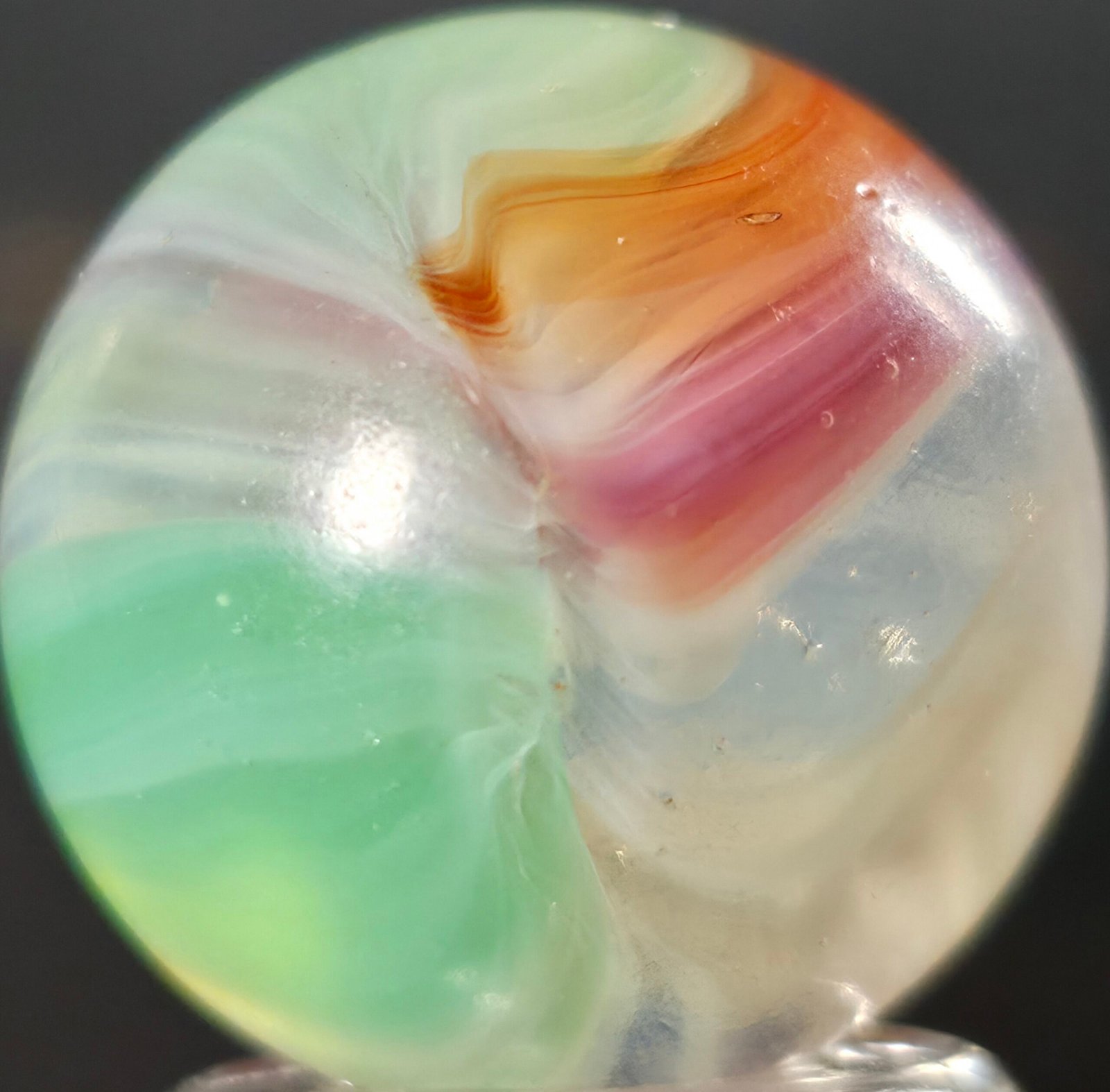Features Lilac, green and orange/pink blends. On an opal whispy white base!
