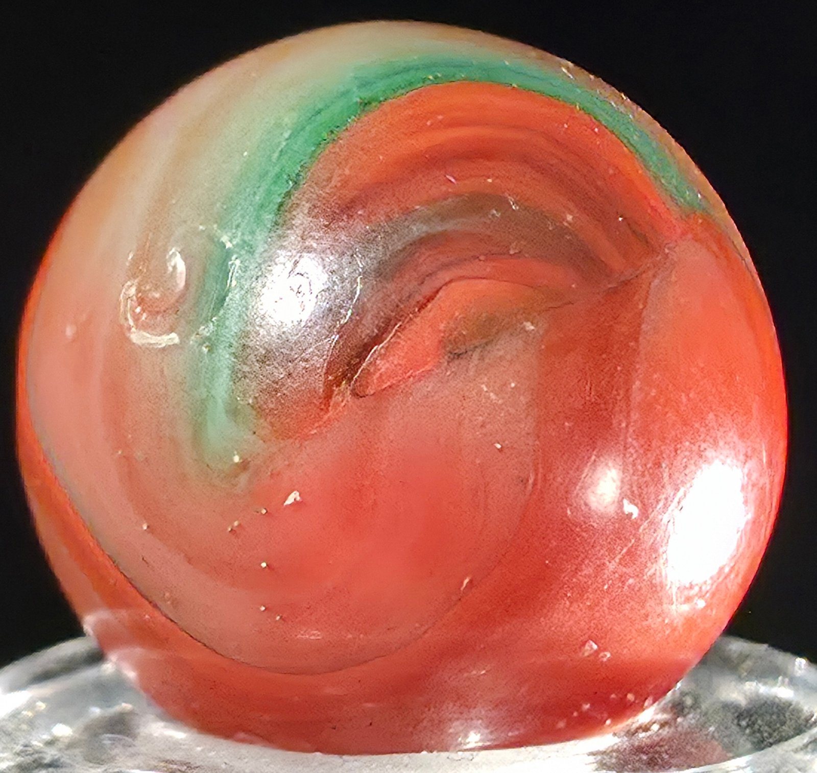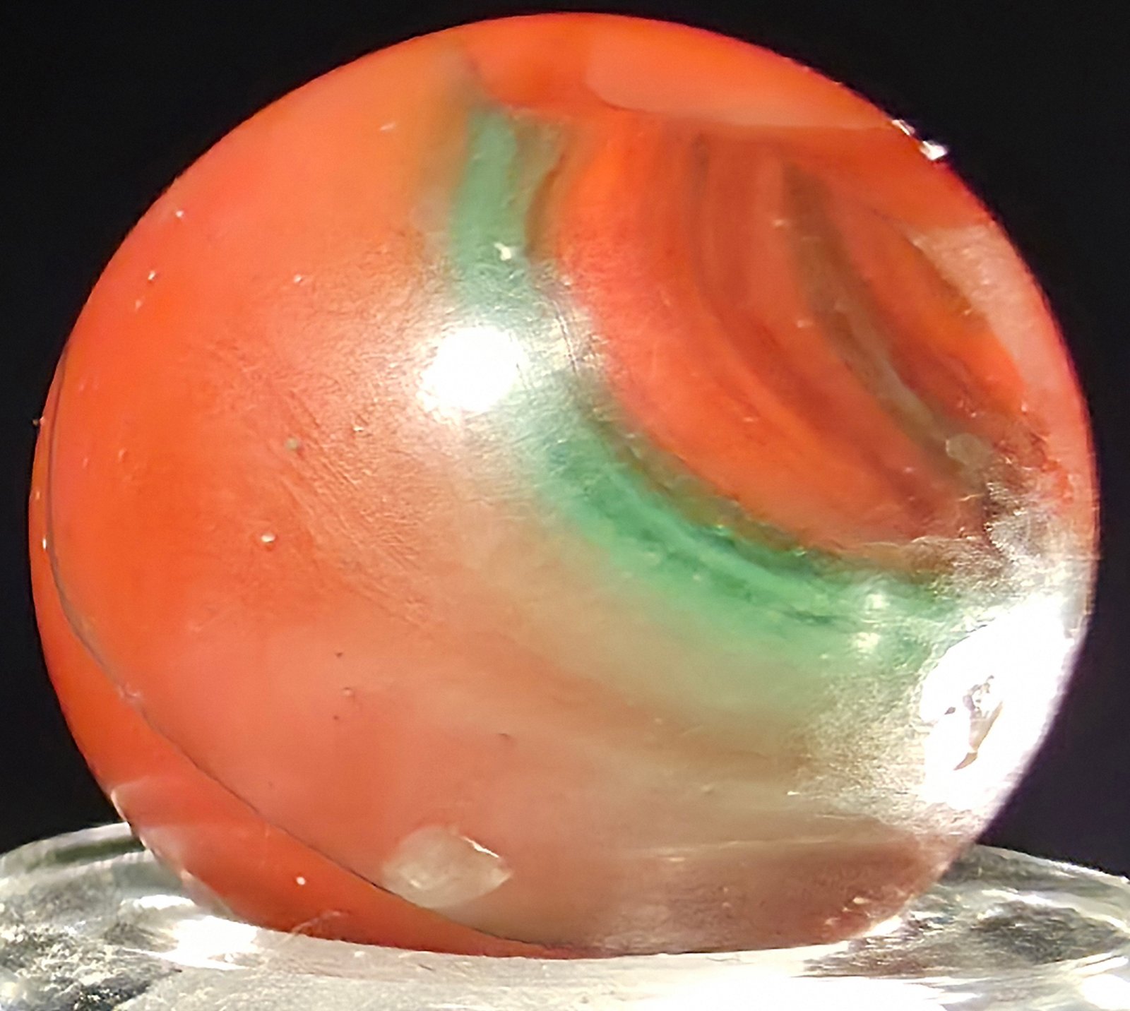 • 3 flea bites and some pocket wear on this rare marble